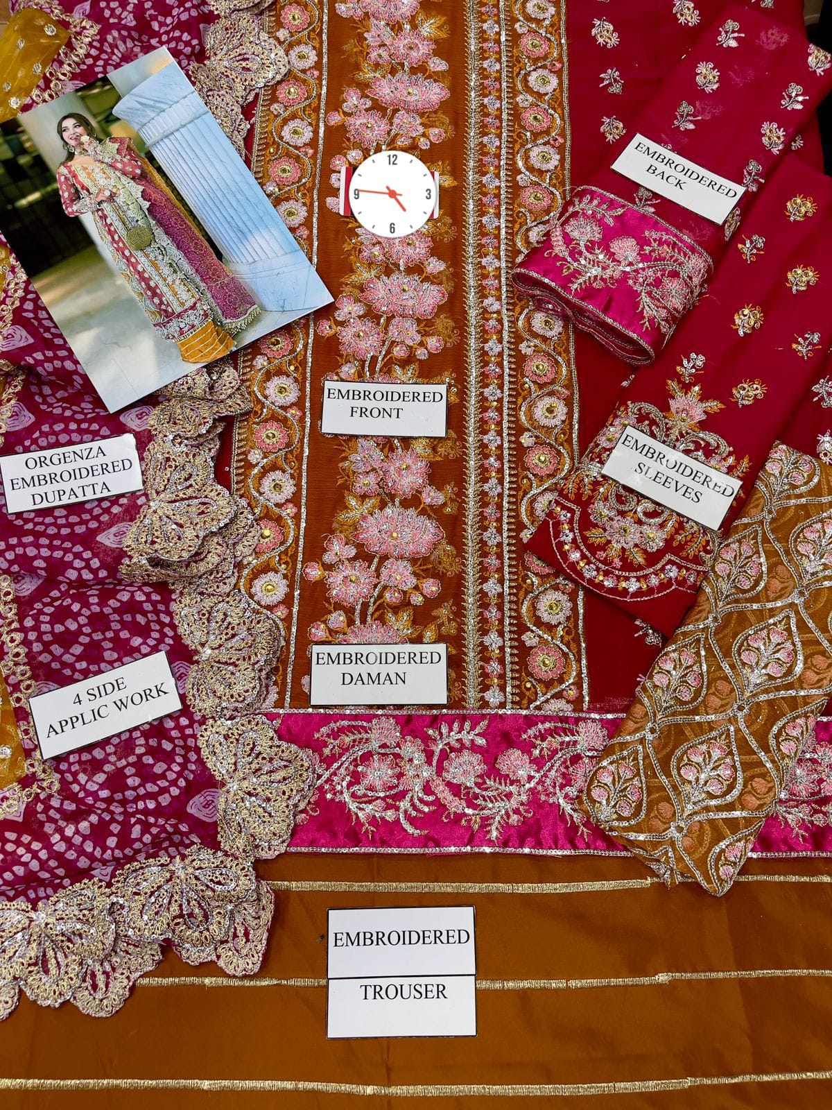 3 Piece - Chiffon Full Heavy Embroidered Suit with Organza Dupatta with Chiffon Border (Unstitched)