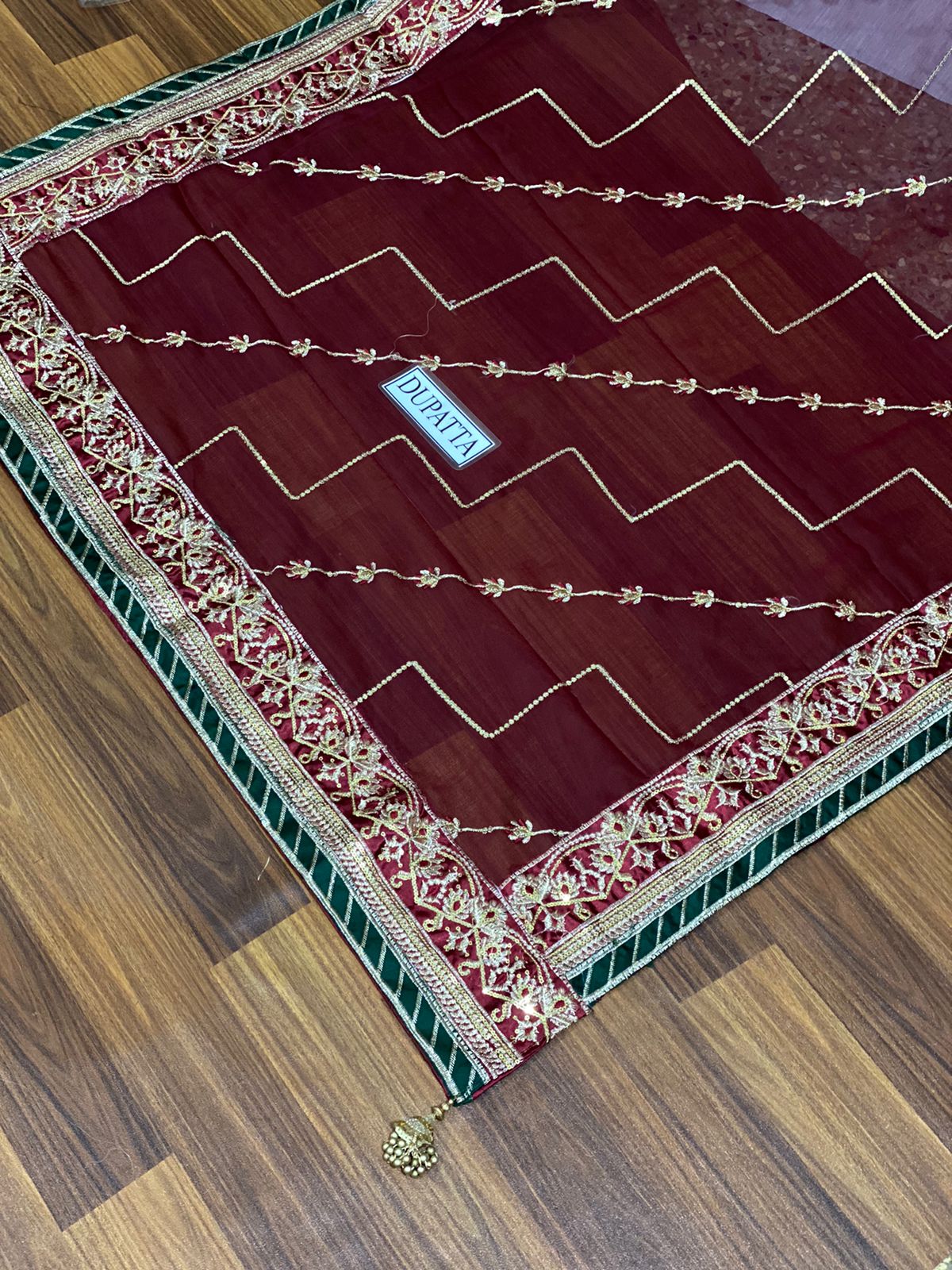 Front Embroidered Chiffon with Daman Border, Handwork & Stone Work