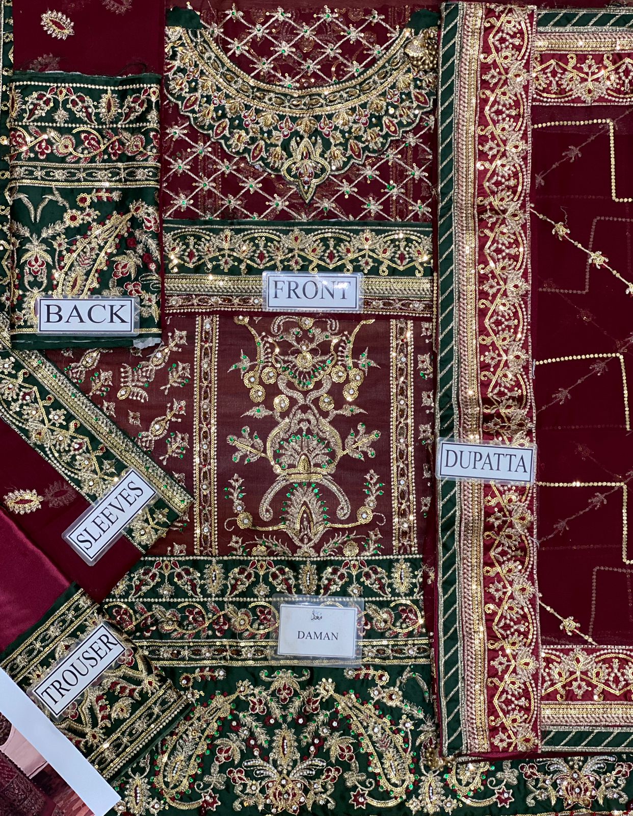 3 Piece - Asmin Jofa Chiffon Full Heavy Embroidered Suit with Heavy Embroidered Chiffon Dupatta with Chiffon Border (Unstitched)