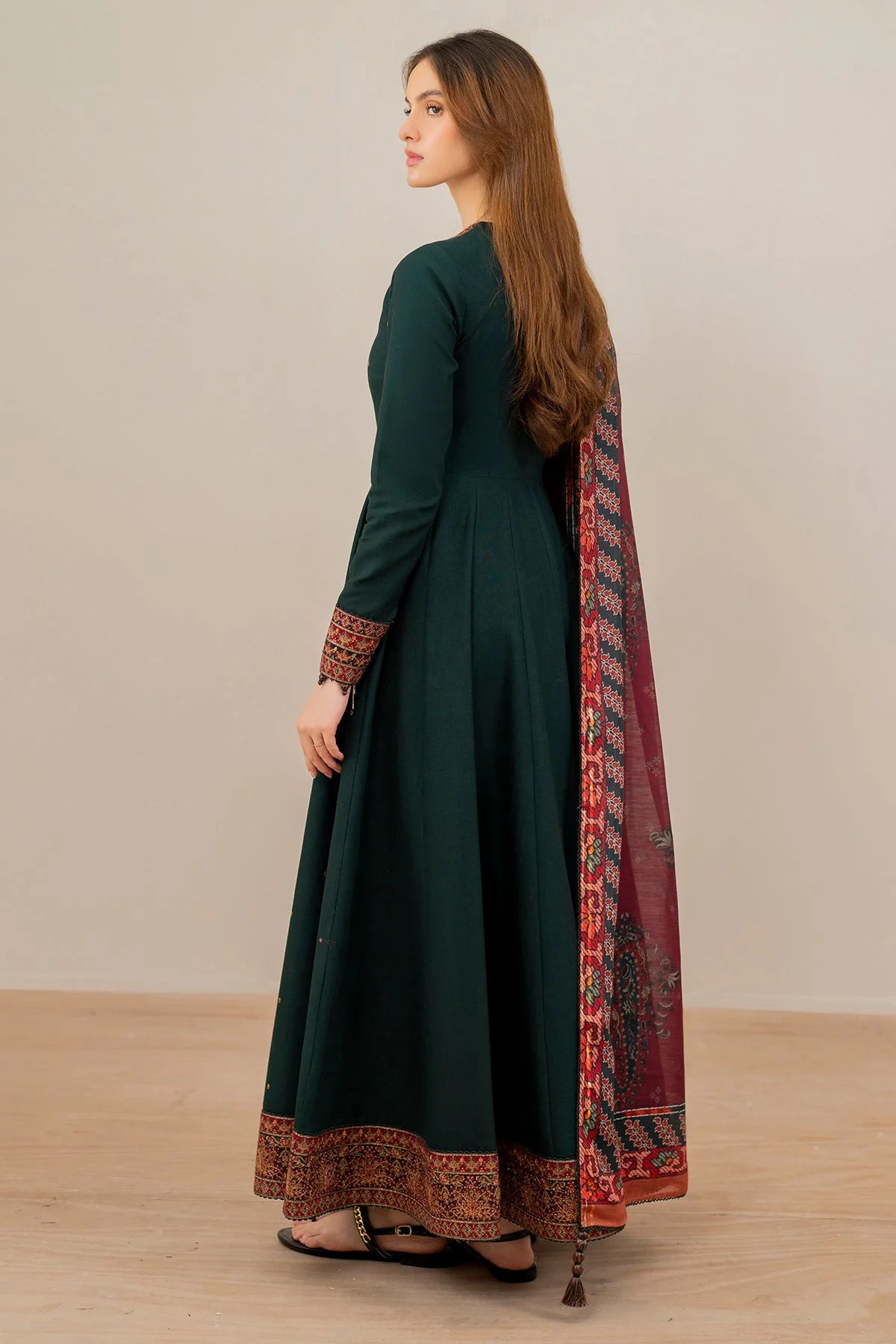 3 Piece - Jazmin Dhanak Embroidered Suit with Digital Wool Shawl (Unstitched)