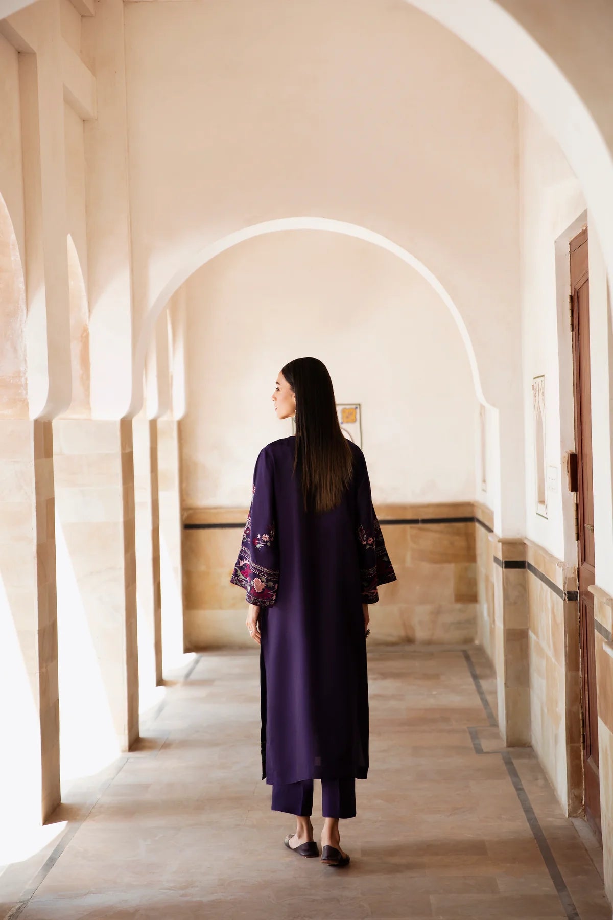 3 Piece - Dhanak Full Heavy Embroidered Suit with Dhanak Embroidered Shawl (Unstitched)